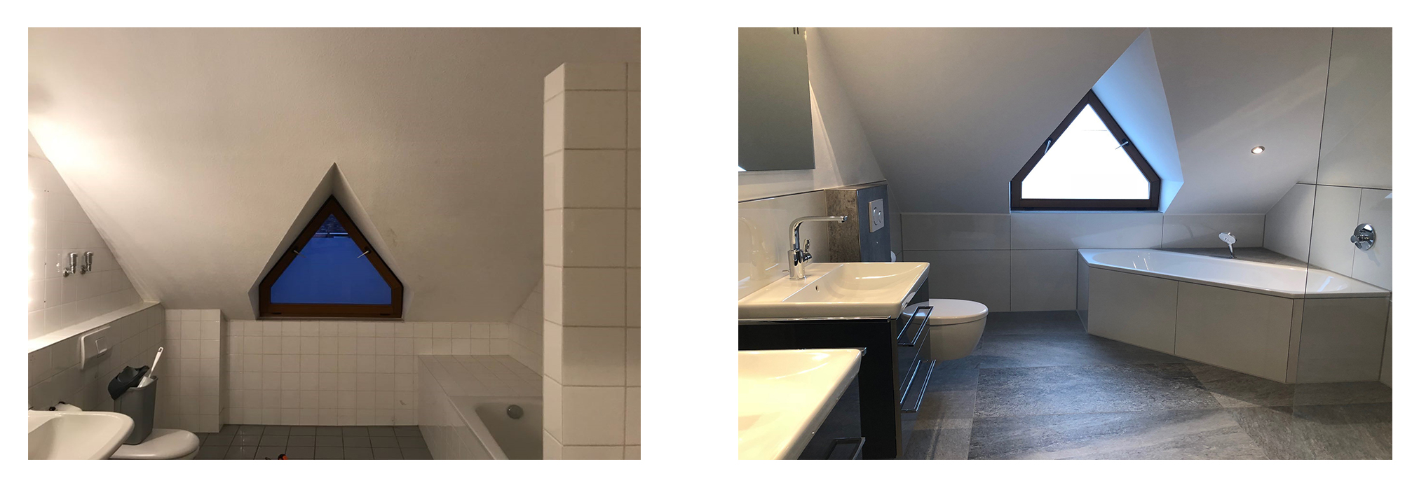 Zwei kleine Bäder und ein Flur wurden zu einer Wellness-Oase